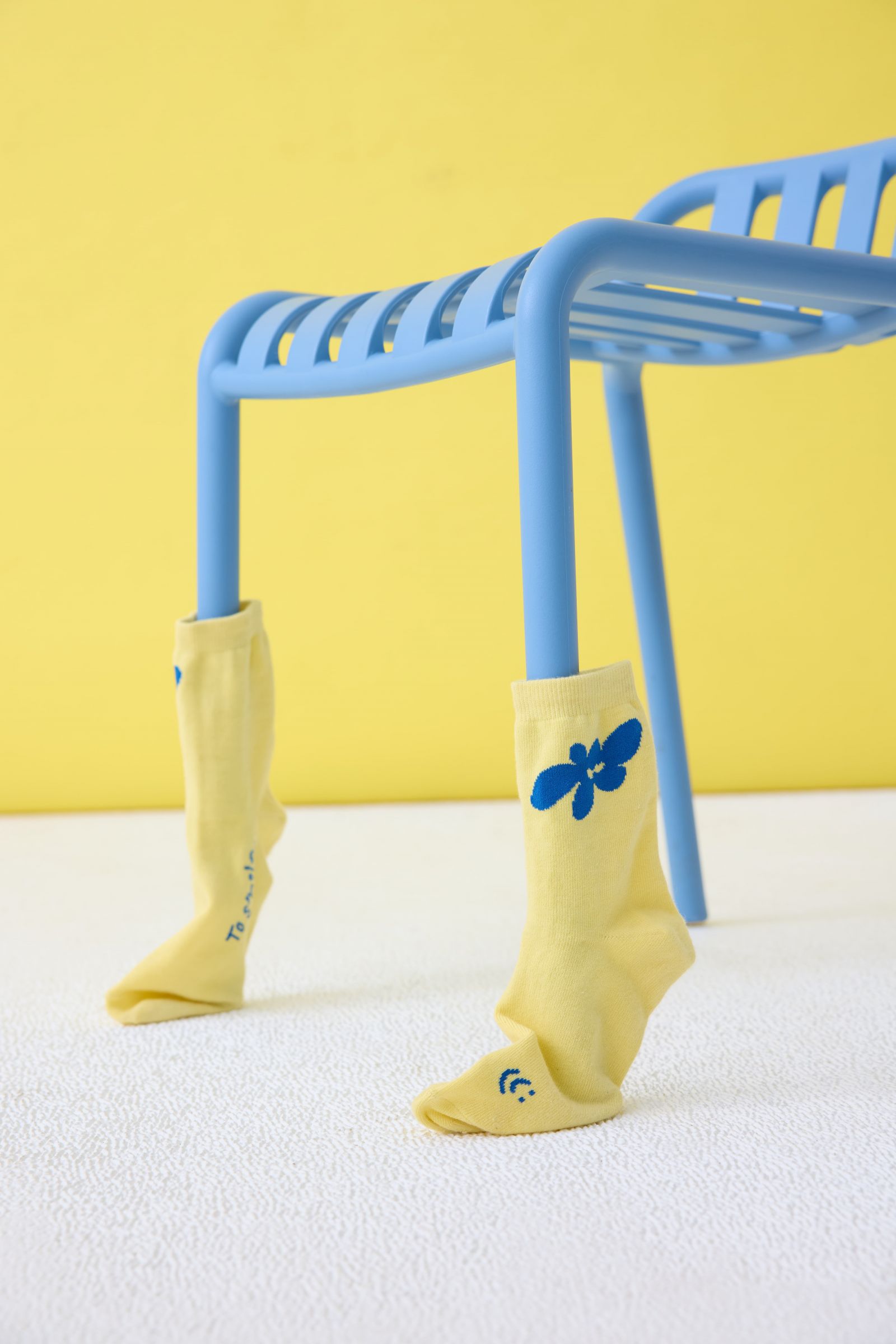 藝術家 To smile 以其標誌性的花朵符號,推出了一系列獨具泰國的明亮與活力氣息的展覽設計周邊,各式貼紙、明信片、娃娃、棉襪、杯墊、方巾與絲巾等多款特色商品,其商品包裝皆有一句「Take me anywhere」,希望透過其所設計的日常物件,隨時為人們生活注入豐盈的愉悅感。