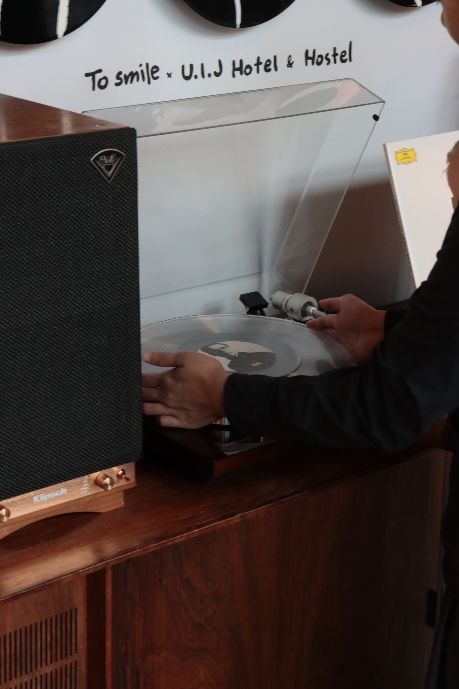 音樂從來不只是背景,而是構築 U.I.J 品牌靈魂的核心語彙。無論是收藏超過 500 張黑膠唱片的館藏、房內的黑膠播放體驗,以及用於公共空間中、來自日本奈良 Listude 手工音響,流露出的迷人立體音質,抑或每晚由旅人與館員共同參與的 Vinyl Session——音樂始終是連結彼此的語言,更是 U.I.J 的旅宿日常。這不僅是一次藝術合作,更是一場關於「聆聽」與「綻放」的哲學對話,根植於 U.I.J 對音樂與靈魂共鳴的深刻信仰。