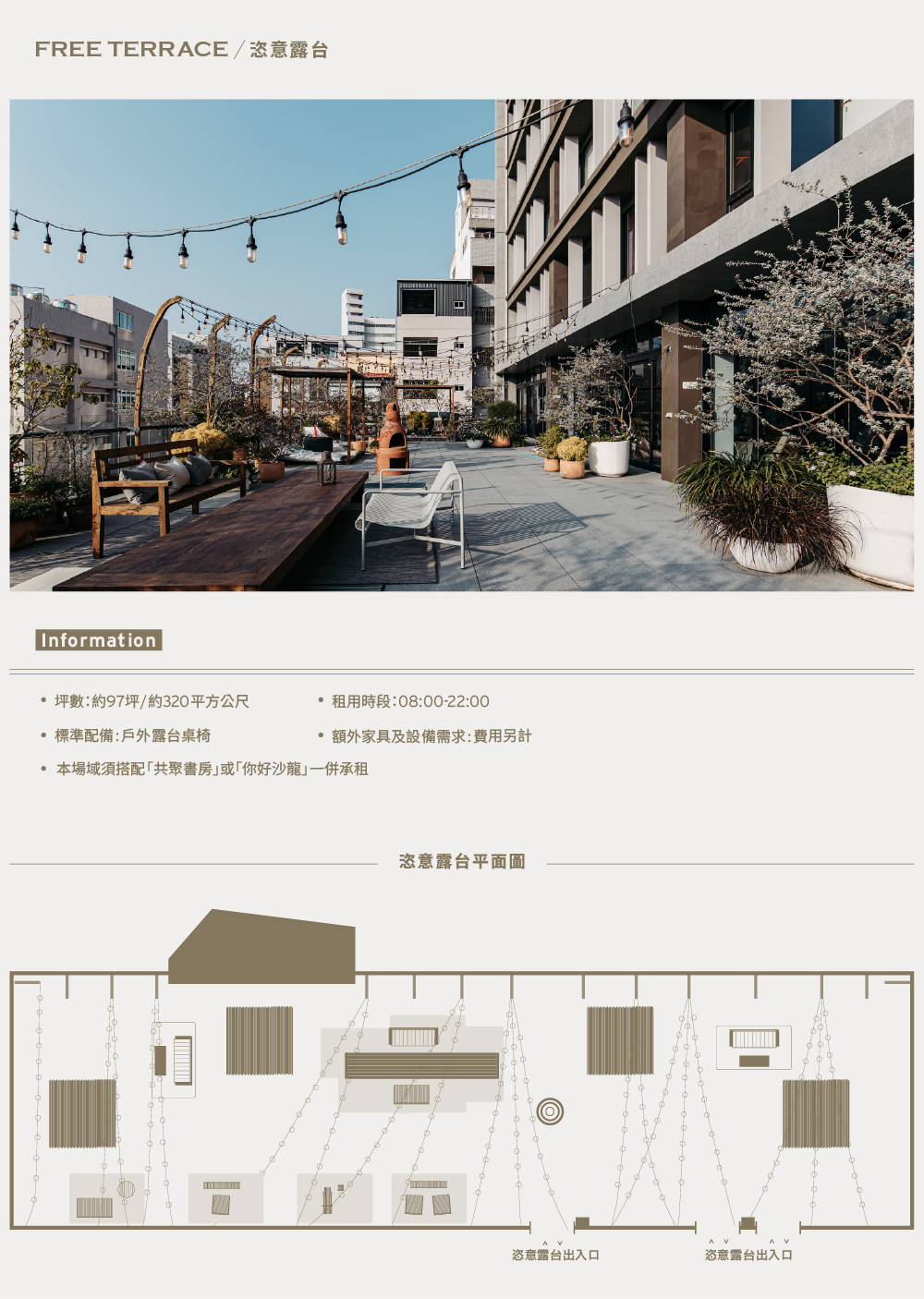 開闊明亮的你好沙龍和共享廚房、浪漫的恣意露臺、獨立的共聚書房,無論是會議、派對、婚禮、品牌發表會、烹飪課程、商業攝影,都能與您一同討論客製,靈活規劃每一場重要活動!