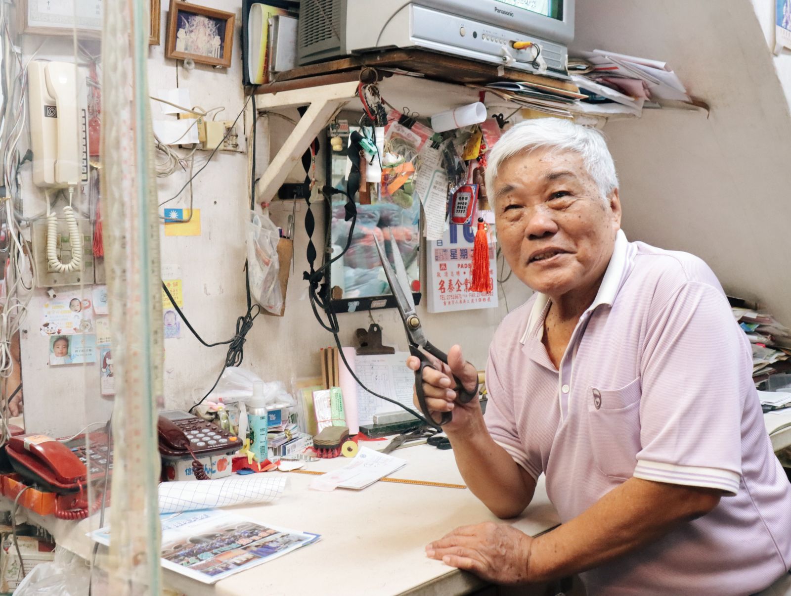 如今,鄭老闆只接受少量訂製,並積極參與教學,擔任國服比賽的指導老師。他走到工作臺旁,拿起布尺、短尺、粉片、剪刀和針,輕聲說:「做旗袍需要的 不僅是技術,還有耐心。」